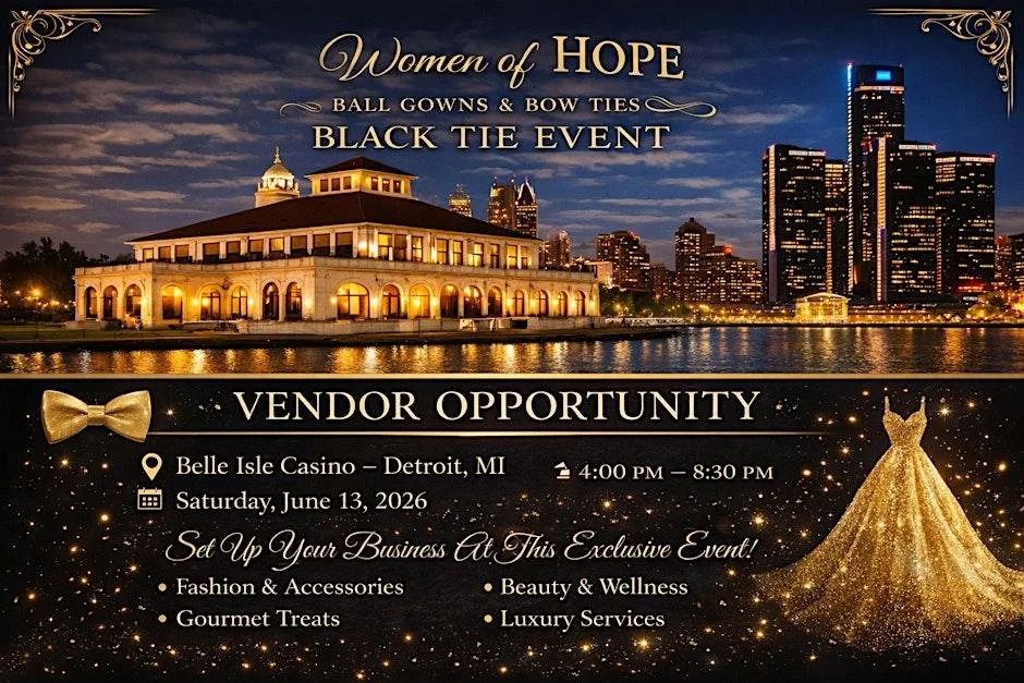 Thank you for your interest in becoming a vendor at the Women of Hope Ball Gowns & Bow Ties Charity Event at Bell Isle Casino.